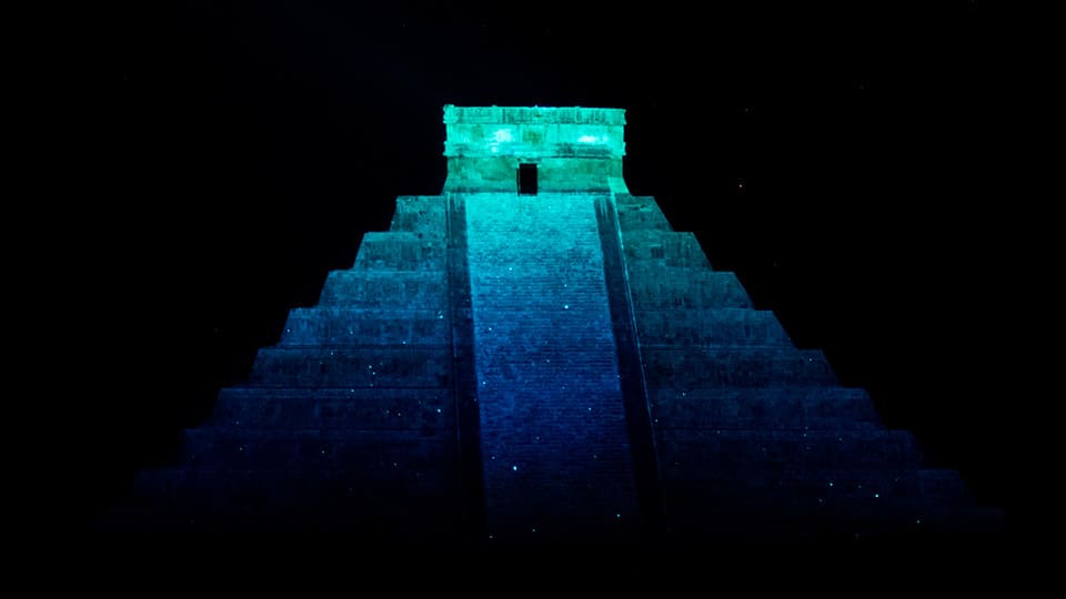 •Espectáculo de video mapping con recorrido nocturno en la zona arqueológica de Chichén Itzá.